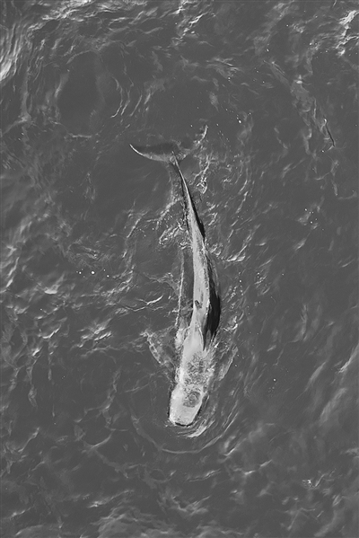 5月26日,短肢领航鲸“海棠”在大海里游动(无人机照片)。