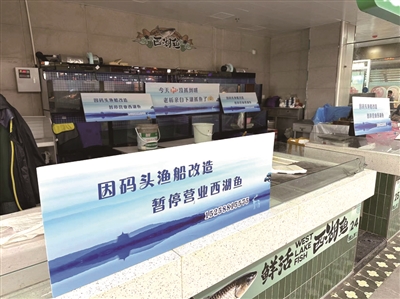 然而,就在一个月前,西湖鱼亭摊位上放出了暂停营业的告示牌。