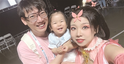 这次来杭州参赛,社员衍衍可谓是拖家带口,老公和1岁半的女儿同行。“女儿还没有完全断奶,所以就一起带来了。我老公也是一位Coser,这次,可以带着女儿入二次元的坑了。”