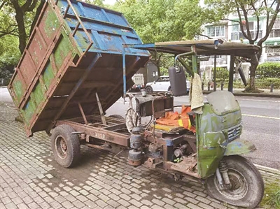 在石港街做清洁工作的刘阿姨(化姓)告诉橙柿直通车记者,这辆车平时主要是拿来装运树叶的,换季的时候用得比较多,最近叶子没有那么多了,拿市政配备的小型三轮车就可以装运。