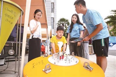 今年还有一个人气打卡点——“固碳魔法师”。在中国漫长的海岸线上,有一种神奇的生态系统——红树林。它是众多潮间带生物的家园,候鸟长途迁徙中的驿站;它是一道绿色的生态屏障,抵御台风、保护海堤。活动现场,海洋二所的科学家告诉大家,这个“全能”的固碳小能手,也是全球变暖的“减速器”。