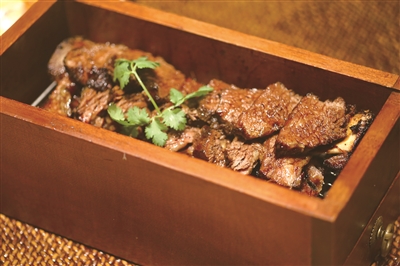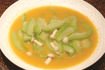 现在,铁定鲜的大爆款低温美国牛肋骨,就是采用西餐的烹饪方式,经48小时真空低温慢煮,最大限度保留美国牛肋骨的鲜嫩与营养。菜品装在一个木盒子里端上来,带着些许木香,牛肉鲜嫩多汁。六月黄烧丝瓜也可以说是采用西餐做法了,本来看到这菜名,猜想此处应该有蟹,可一上来,只是一盘浸在黄色半汤里的丝瓜,才知道那汤汁是用六只六月黄熬制而成,主厨精选的水果丝瓜自带清甜,鲜得不得了。