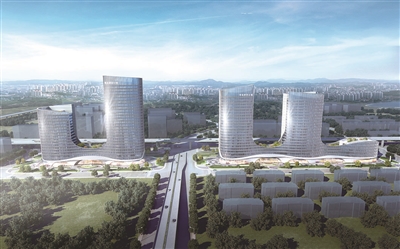 东区块有2幢建筑,最高的一幢为27层,建筑高度约134米;西区块有3幢建筑,最高的一幢为22层,建筑高度约118米。东西两个区块将通过地下室二层相连,实现互联互通、配套共享。