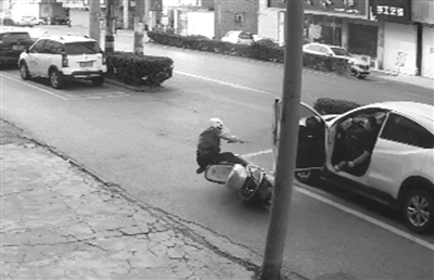 2022年8月19日早上,吴某驾驶小轿车去自己开的店,将车停在店门口一处停车泊位上。当她从驾驶座下车时,一辆电瓶车从后方驶来,撞上了刚打开的车门,连人带车摔倒在地(见下图),送医不治当日死亡。