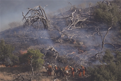 加州林业和消防局说,野火15日下午在加州洛杉矶县西北部戈曼一带的5号州际公路附近开始燃烧,那里位于洛杉矶西北方向约100公里处。大约400名消防员配备70辆消防车和两辆推土机参与灭火。