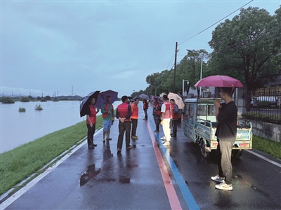 6月23日16时15分,东苕溪瓶窑站水位达到警戒水位5.66米,苕溪发生今年第一场编号洪水。余杭区随即启动了西险大塘、南北湖围堤“百米一人”巡塘工作,全区1200多名巡塘人员“上岗”,24小时巡塘查险,筑牢防汛“铜墙铁壁”。