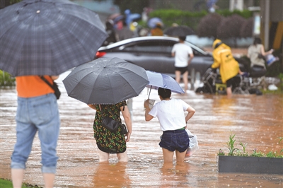 6月24日,受强降雨影响,湖南省长沙市部分地段出现内涝。据新华社