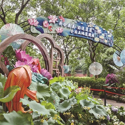 昨天,恰逢6月24日杭州西湖日,在这个属于西湖的特别日子里,一场“荷合美美 好运莲莲”全国五地莲荷展在西湖景区钱王祠内开幕。