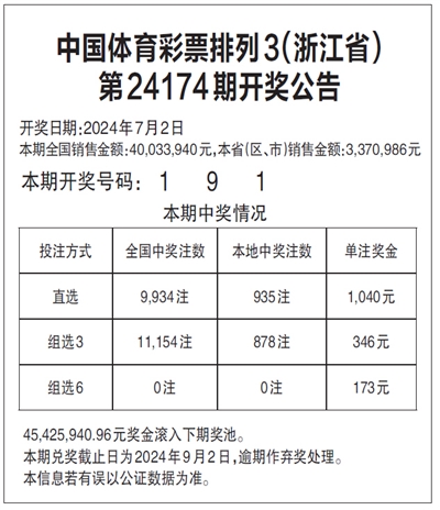 中国体育彩票排列3(浙江省)
