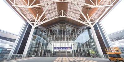 大会展中心吸纳了国内外大型会展场馆的设计经验,设置了标准展厅、会议中心、商业配套、办公设施等多种功能,并注重生态化和人性化建造。比如,主体采用钢结构、屋面铺设光伏玻璃,年发电可达70多万度,二氧化碳减排量相当于在场馆周围多种了3万棵树,同时场馆内采用降噪、空气治理等方式,确保公共空间舒适性。
