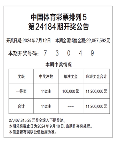 中国体育彩票排列5 第24184期开奖公告