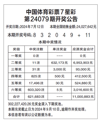 中国体育彩票7星彩 第24079期开奖公告