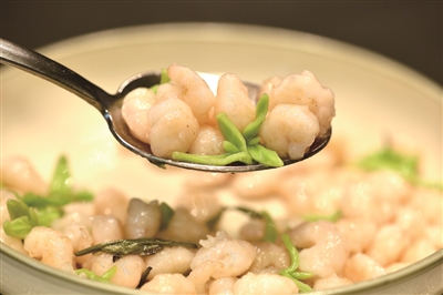 在如院,夏日里的小清新也不可或缺。最新一版的龙井手剥虾仁变得更入味了,傅月良和他的团队不再追求虾味与茶香的平衡,而将重点放在突出鲜味上,于是那手捏出来的“茶叶”以更出色的嚼劲,拉长了鲜的回味。再就是甜品“茉莉花夏藕荔枝”,茉莉花香扑鼻,荔枝果冻晶莹剔透,惊喜部分是脆藕末沉浸于淡淡的糖水中,嗅觉、视觉、味觉几经转折,很是曼妙。