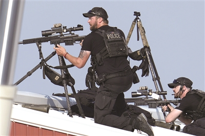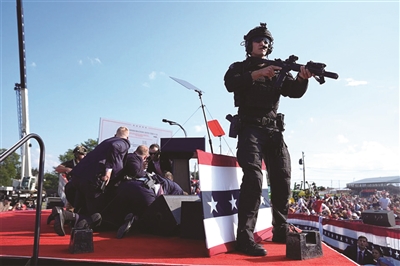 记者詹姆斯·平德尔在《波士顿环球报》网站撰文说,两名特勤局特工用大型军用绿色双筒望远镜扫描一个区域,然后所有特工都把狙击步枪指向了同一个方向,在特朗普开讲6分钟后,传来一声巨响。他抬头一看,特工们正朝枪一直指着的方向射击。