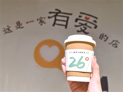昨天,杭州最高气温达到了37℃。下午2点,有几个外卖小哥坐在店门口的遮阳伞下休息。我推开了“26°城市公益善集空间”的门,咖啡香扑鼻而来,一面墙上整齐地排列着印有“26°”的咖啡杯和手写的“福”字纸袋。墙的中间,有一行字:来自小蜗牛们的感恩馈赠。