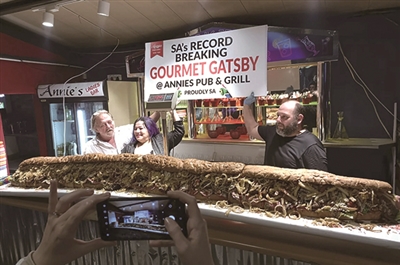 近日,南非开普敦一对夫妇推出了一款长达9.8英尺(约3米)的巨型“盖茨比”三明治,有望创造新的纪录。