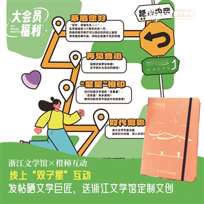参与方式:在橙友圈#深夜读书馆#话题下,发帖晒出你在浙江文学馆的双子星观展体验,如分享你喜爱的两大文学巨星鲁迅和茅盾的作品,以及其他与鲁迅和茅盾的话题,记得带上标签#文学双子星#。我们将从所有参与者中选出20位,每人送出浙江文学馆定制的文学帆布包和文学纪念笔记本各一份。