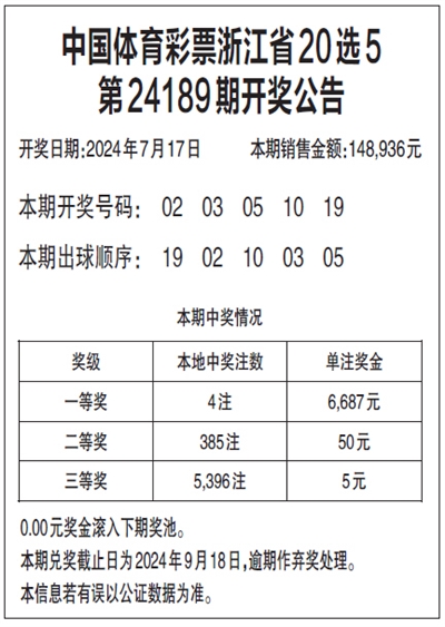 中国体育彩票浙江省20选5