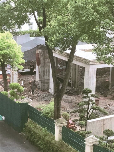 雅仕苑物业阮经理说,昨天中午,物业还看过这栋房子,目前房子还没有接到相关审批重建的消息。“这栋别墅的业主的确和物业说过想要修缮,但修着修着感觉不对劲了,有邻居反馈投诉过,没有审批手续,肯定不能建。”