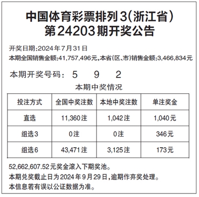 中国体育彩票排列3(浙江省)