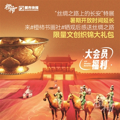 活动参与方式:中国丝绸博物馆联合都市快报·橙柿互动推出“我眼中的长安展”晒帖活动,请你来橙友圈#橙柿书画社#话题下,发帖写下观看中国丝绸博物馆“九天阊阖:丝绸之路上的长安”特展后的感受,帖子正文内容不少于150字,需加上#我眼中的长安展#标签。