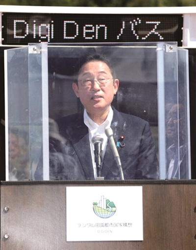 7月31日,日本首相岸田文雄到访三重县一家商业度假村,接受采访时周围安装了防弹隔板。