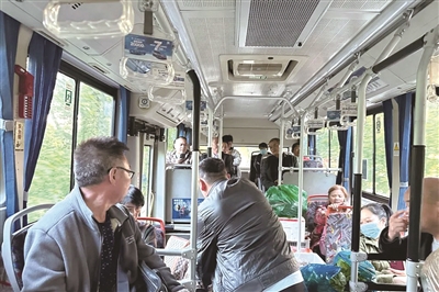 “艮山门东至盐仓专线”车厢里有些拥挤