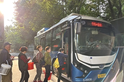 排队乘坐“艮山门东至盐仓专线”