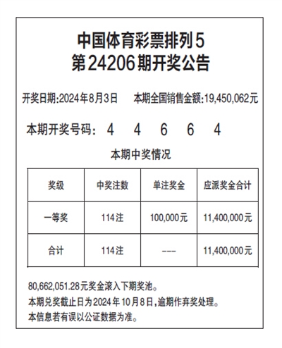 中国体育彩票排列5 第24206期开奖公告