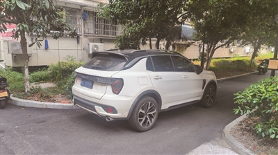 昨天,橙柿直通车记者来到新华坊小区44幢,找到这辆车,停放于45幢楼下。路面不宽,车辆停放在路上后,仅留下约一人宽的通道可通行。