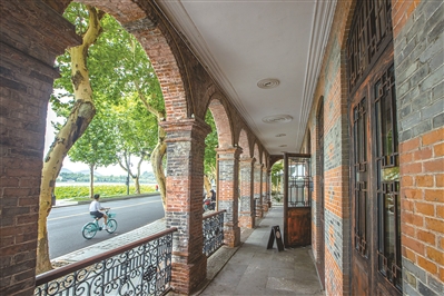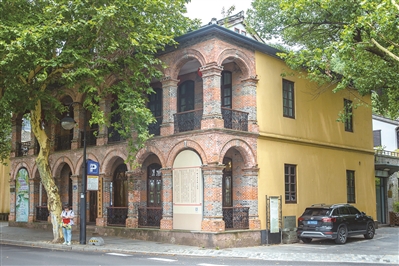 在它们之中,有一栋三层楼房总能吸引住人们的目光为之多停留片刻。青红砖墙,方形立柱,弧形门窗,雕花立面……显示出中西结合的独特风格,那就是已经117岁的抱青别墅。民国时期,这里还曾是红极一时的高档饭店,成为许多人赏西湖、探杭城的落脚点。