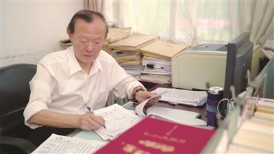 一张不算宽敞、遍布岁月痕迹的木质书桌,座椅左手边靠墙放置的及腰高三层小书架,在简单到略显简陋的办公室里,盛增秀的个人“工位”占地不到两平方米。自从事中医古籍文献整理研究工作以来,40多年里,就是在这样一方角落,盛增秀笔耕不辍,带领团队编著出版了150余部医学专著。