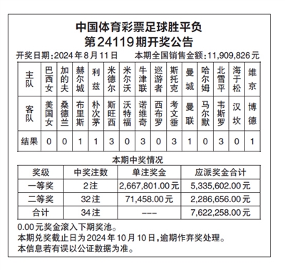 中国体育彩票足球胜平负 第24119期开奖公告