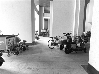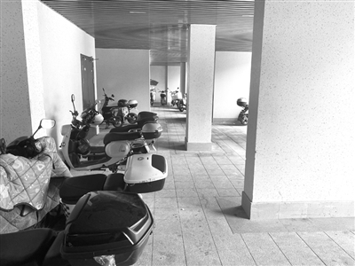 一位骑电瓶车的大姐说,物业的确提醒架空层不能停,“但问题是没有地方停啊,充电车棚位置不够。”