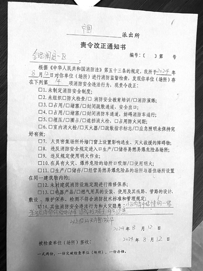 “昨天我们又收到责令改正通知书,说我们小区多幢楼一楼架空层停放电瓶车,存在严重消防安全问题,这已经是派出所第二次因为同一问题给我们出具责令整改通知书了。”