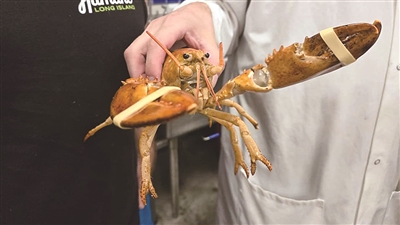 一只极为罕见的橙色龙虾近日被美国一个动物保护组织放归大海。依照美国媒体说法,发现一只橙色龙虾的几率约为三千万分之一。