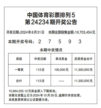 中国体育彩票排列5 第24234期开奖公告
