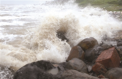 9月6日,台风在广东徐闻附近海面掀起巨浪。 据新华社