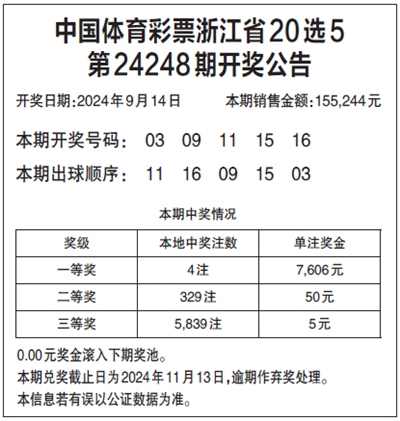 中国体育彩票浙江省20选5