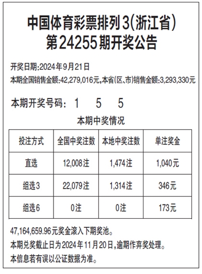 中国体育彩票排列3(浙江省)