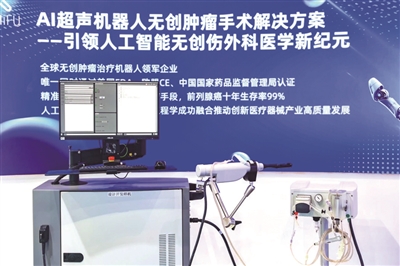 AI-HIFU无创手术机器人与国产首款3A游戏大作《黑神话:悟空》、太空计算技术等各领域顶尖展品,一同被列为本届数贸会的15大“镇馆之宝”。