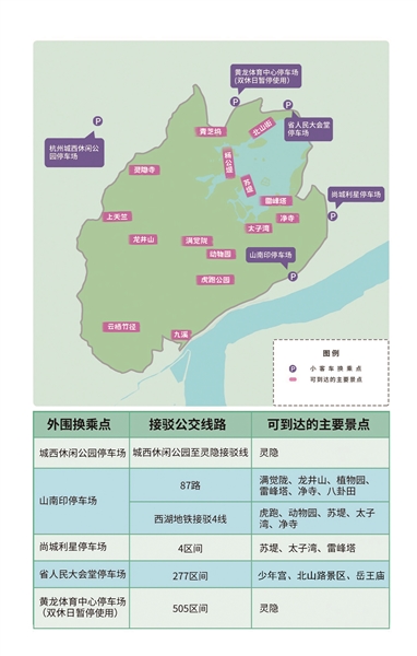 国庆假期,西湖景区将实施相关交通管理措施,为了便利出行,建议绿色出行,选择公共交通。