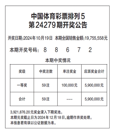 中国体育彩票排列5 第24279期开奖公告