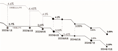 中国人民银行授权全国银行间同业拆借中心公布,2024年10月21日贷款市场报价利率(LPR)为:1年期LPR为3.10%(前值是3.35%),5年期以上LPR为3.60%(前值是3.85%),均较此前下降0.25个百分点。