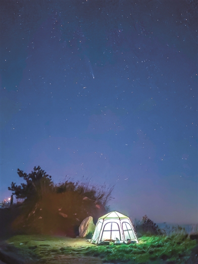 10月24日18时56分,临安太子尖,彗星在帐篷上方。