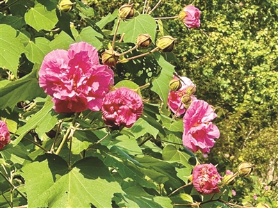 说到“芙蓉”,人们常常会想起荷花,荷花是水生草本植物,盛夏开花,木芙蓉则是木本植物,属落叶性灌木,秋天开花。木芙蓉又名芙蓉花、酒醉芙蓉、三醉芙蓉,锦葵科木槿属,有单瓣和重瓣之分,单瓣的木芙蓉给人以清雅之感,而重瓣的木芙蓉花大色丽,雍容端庄,常被誉为“秋牡丹”,有富贵、锦绣之寓意。