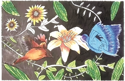 插画狮:《鸟语花香》 杭州市学军教育集团之江第一小学四(6)班 童画