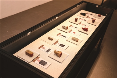 “斩截之迹”——两汉魏晋南北朝玺印典藏菁华展,展出约百余方珍贵的古印原物,主要撷取两汉魏晋南北朝的将军印、凿印、烂铜印等,以冲撞锋锐、斩截杀伐的印面审美特征为主,让观众能够近距离感受到这一时期印章的独特魅力。