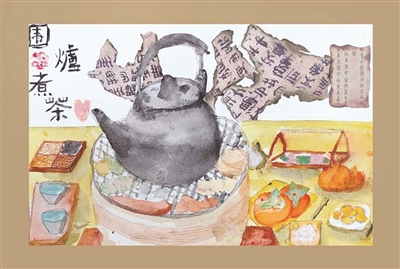 插画狮:《围炉煮茶》 杭州市竞舟第二小学四(1)班 肖誉萱