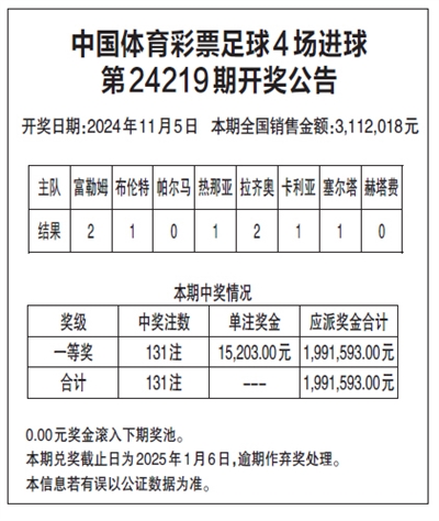 中国体育彩票足球4场进球